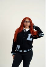 The chest features a chenille varsity "L" patch, with a '79 chenille patch on the pocket nods to the year of Livingstone College founding year 1879. Vintage-inspired ribbed striping along the hem and cuffs. Livingstone woven signature along the lapel.